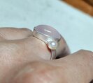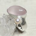 925ring幅約5㎜ ローズクォーツ16×9×7㎜ 5㎜珠パール