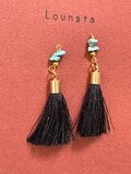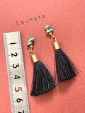 ターコイズピアス タッセルピアス フリンジピアス ブラックタッセル 夏ピアス 樹脂ピアス