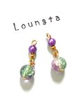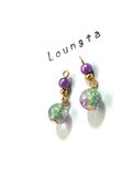 プチプラピアス パープルパール グリーンパープルガラスビーズの小ぶりピアス 樹脂ピアス