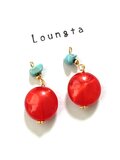 ターコイズピアス ターコイズ レッドアクリルビーズ 夏ピアス 樹脂ピアス