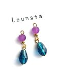 ガラスビーズピアス 夏ピアス パープルとブルーしずく型 小ぶりピアス 樹脂ピアス