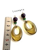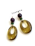 アンティーク大ぶり パープルウッド、チェコビーズ カーキアクリルチャームの大ぶりピアス 夏ピアス 秋ピアス 樹脂ピアス