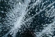 糠平湖の幻想的なアイスバブルの光景をガラスに閉じ込めました。