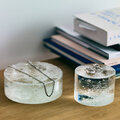 世界各地のさまざまな湖の表情をガラスに閉じ込め、