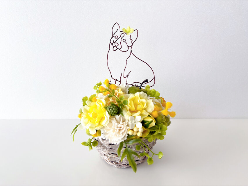 コーギー部分のワイヤーは手曲げによる握り留め工法のクラフトです。