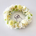 爽やかなグリーンとホワイトの上品で優しい雰囲気のリースです