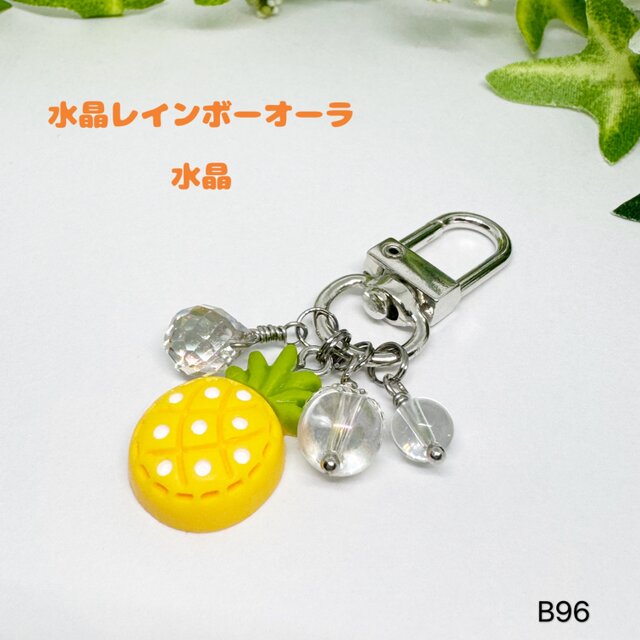 NO.B96 パイナップル 天然石 水晶レインボーオーラ キーホルダー バッグチャーム 果物キーホルダー パワーストーン 幸運