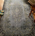 グレー ブラック195×118 ボタニカル トルコヴィンテージラグ