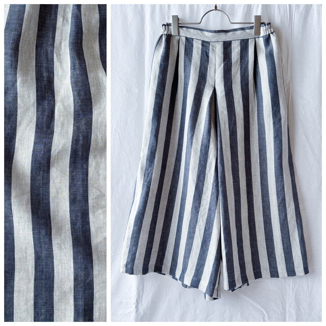 レディのためのフロレアルパンツ:80cm(リネン:ストライプ)