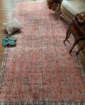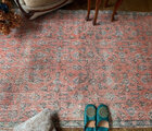 大判 テラコッタレッド オレンジ240×130フラワー トルコヴィンテージラグ