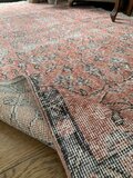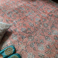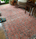 ヴィンテージな擦れ感じる テラコッタレッド。花の街イスパルタ産の美しいボタニカルフラワーを全体に織り込んだ人気のトルコラグです。