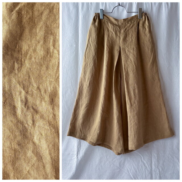 レディのためのフロレアルパンツ:80cm(無地リネン:キャメル)
