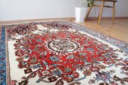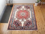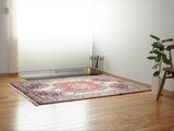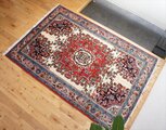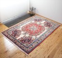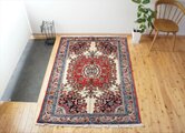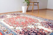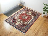 こちらの絨毯は、中央にメダリオン、四隅にはコーナーメダリオンが配置された伝統的なデザイン。