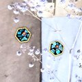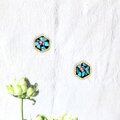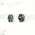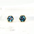 黒漆と青螺鈿とスワロフスキーの六角ピアスイヤリング【2187】六角形 面長 色違い#男性