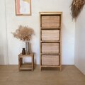 木製オープンシェルフ スリム ラック ラタン ボックス 4段 木製収納棚 省スペース家具 ナチュラル収納 ラタンボックス ラタンバスケット オープンラック おしゃれ棚 日本製家具 完成品家具 サイズオーダー家具 北欧風インテリア 店舗什器 什器ディスプレイ スタイリング什器 天然木ラック 木製家具 シンプル収納棚 カスタマイズ収納 キッチンラック 洗面所収納 ランドリーラック 見せる収納 隠す収納 カフェ風家具 北欧 おしゃれ 棚 おもちゃ収納 子供部屋収納 タオル収納
