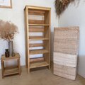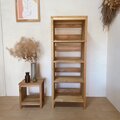 木材の自然な風合いが魅力の、スリムなオープンシェルフ。