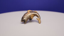 鏨で刻み、糸鋸で抜き、ヤスリをかけ、色付けを施す。錺金具とほぼ同じ技法・工程を経て魚のピンバッチは作られています。