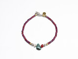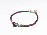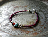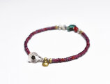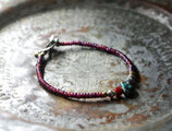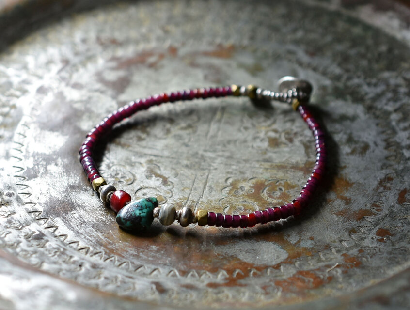 oldチベタンターコイズと古代瑪瑙、葡萄色&濃赤ホワイトハーツ、oldチンシルバー&オリッサブラスなどを繋いだ華奢なブレスです。