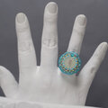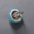 青系の色が好きで、デザインに一目ぼれして購入しました! 人と被らない貴重な一点もので感動です。これからたくさん身に着けたいと思います! お写真どおり素敵なリングで、作りもしっかりとしています。 お品物が届くまでの連絡も丁寧にしていただき、安心してお取引できました。 この度はありがとうございました。