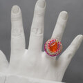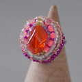スカーフリングにも おしゃべりな指輪215 フリーサイズ ビーズ刺繍のリング オレンジ ビビッド おおぶりリング