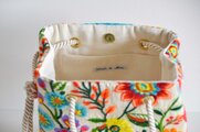 インド刺繍 ハイクラスフラワー刺繡 スクエア 2wayポシェットマリンバッグ 残り3点になりました