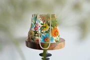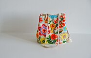 『 太陽をいっぱい浴びたような美しい花柄のヴィンテージ感とトレンド感をあわせもつボタニカルフラワー刺繍の正方形のポシェットマリンバッグ』