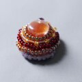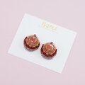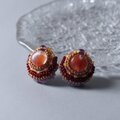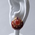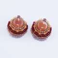 ビーズ刺繍のイヤリング ピアス 1 ブラウン レッド パープル おおぶり 一点もの