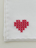 白麻のリネン生地に赤い刺繍糸で