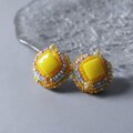 ビーズ刺繍のイヤリング ピアス 5 イエロー パープル おおぶり 一点もの