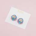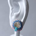 ビーズ刺繍のイヤリング ピアス 7 ホワイト ブルー ピンク パープル おおぶり 一点もの