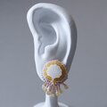 ビーズ刺繍のイヤリング ピアス 9 ホワイト イエロー オレンジ おおぶり 一点もの