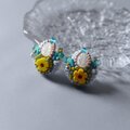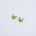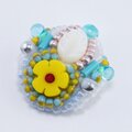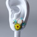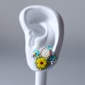 ビーズ刺繍のイヤリング ピアス 14 ブルー ホワイト イエロー シェル おおぶり 一点もの 個性的 フラワー