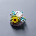 とても軽いおゃべりなブローチ2 ビーズ刺繍のブローチ カラフル グレー写真で拝見するより実物は細かく細部に亘って丁寧に繊細にセンスよく…もう脱帽です。これからの季節大活躍のブローチとリングです。 もう出会って10年以上と思いますが、どんどん進化しチャレンジを怠らない姿勢にこれからも期待してます。
