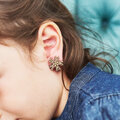 ネジバネ式タイプの金具(ニッケルフリー)に耳が痛くなりにくい シリコンゴムでカバーをしております。