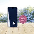 トイプードルシルエットデザイン(ベースカラー:ネイビーブルー)の帯なしiPhone手帳型スマホケースです。