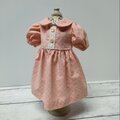小さい着せ替え人形用ドレス㉚木綿のチェック柄のワンピースはアクセントのレースのリボンがとても可愛らしいく素敵です。 ウエスト切り替えのワンピースは袖がふわっと丸くなっていて可愛く、ピンクの薔薇のスカートとの組み合わせがとても良いです。また、縫い目もとても丁寧な仕上がりで素晴らしいです! 取引もスムーズでいつも安心して購入できております。 ありがとうございます♪
