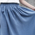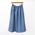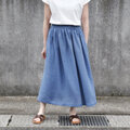 【即納】さらりと軽やか、リネンのナチュラルな風合い ハーフリネン ダブルガーゼのギャザースカート(スモークブルー)