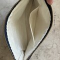 北欧柄の布地が目を惹くかわいい生地で仕上げています。フラットポーチなので、カバンの中でかさばらないのがいいです。
