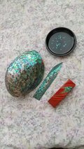 朱漆を何度も塗り重ね、メキシコアワビ貝で渦を表現しました。