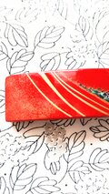 四角形のケヤキの木地に朱漆を何度も塗り重ねて作ったバレッタです。