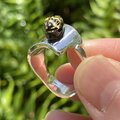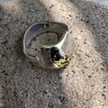 日常のお洒落にもお出かけにもお使い易いですよ。(11/9) 秋の夜空のような冴え冴えとした銀の梨地リングに、ピカピカの黒いガラスを嵌めました。