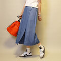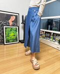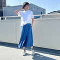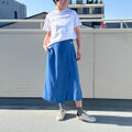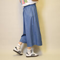 カジュアル感のトップスや綿麻ナチュラル地のジャケットと合わせやすく、スニーカーやパンプスなどとコーデしやすい。