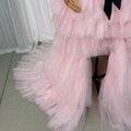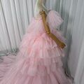 カラードレス ミニドレス ピンク ビスチェタイプ リボン 可愛い 抜群のおしゃれ見え ロングトレーン 取り外し 披露宴/結婚式