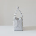 夏新作かご ボウリングバッグ ヴィンテージ風編みxPUレザー【ライトグレー】ロングハンドル 軽やかで収納力