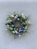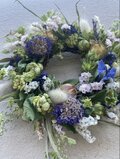 黄緑色、青色をアクセントに、贅沢な夏仕様のリースを作りました。
