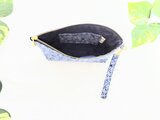 リバティのアバサンスポット柄ブルーの小花柄にネイビーのドットがポイントの華やかで可愛らしい雰囲気の綿タナローン地を使用しています。