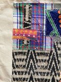 既成の生成りのトートにヴィンテージの様々なファブリックを組み合わせ塗料を吹き付けたアブストラクトなトートバッグ。