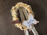 こんにちは。無事受け取りました。 なんて綺麗なリースでしょう。繊細な お作りにただただうっとりしています。 大切に飾らせて頂きますね。 この度は何度もご縁を頂き本当に ありがとうございました。 引き続きクリーマの方でも宜しく お願い致します。