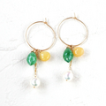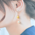 イエローオパールとアコヤバロックパールを組み合わせた、3チャームセットのフープピアスです。
