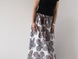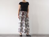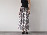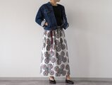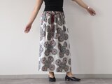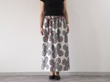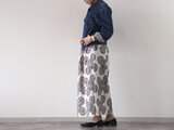 こちらのスカートはブロックプリントで布に文様を描いています。